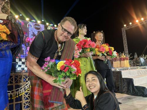• คู่ที่ 2 นางสาวรัชนีวรรณ บุญรินทร์ และ Mr. Meyer Markus Axel เจ้าของกิจการร้าน ME2 Hangout อำเภอเบญจลักษ์